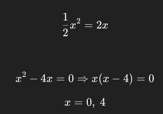 上のようにx座標が2つ出てくるので、あとはそれぞれy=2xに代入してyを求める。